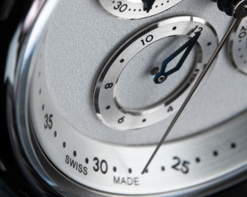 We purposely left this open for your imagination to play with. For us, we see the lakes, mountains, the flag representing our swiss made watches and the dawn of a new day. Can you see it too?